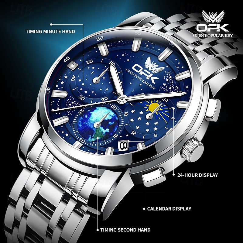 $18.99 - OPK Quartz Watch for Men Starry Sky Display Moon phase Multifunctional Stainless Steel Waterproof Luxury Men's Quartz Watch 8142 2025. Shop for cheap Quartz Watches online? Buy at lightinthebox.com on sale today!