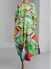 More information about Women's Maxi Dress A Line Dress Fit And Flare Dress Party Casual Boho Wedding Party Wedding Guest Loose Fit Graphic Geometric Long Sleeve Crew Neck Pink Blue Green Spring Fall Winter Autumn