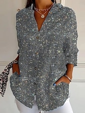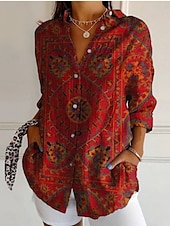 More information about Women's Shirt Floral Graphic Retro Vintage Ethnic Long Sleeve Shirt Collar Regular Tops Daily Holiday Pocket Buttons Print Black Wine Blue Khaki Gray Summer