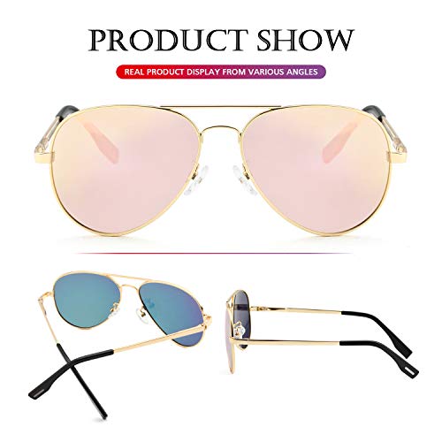• FASHION CLASSIC ►The classic aviator style with humanized design, with a variety of mirrored colors (pink, blue, purple). Designed for driving & outdoor activities; high-definition lens gives you a natural & clear vision; durable & shatterproof.