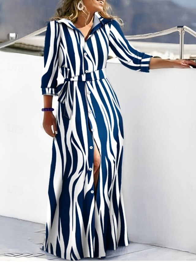 More information about Women's Maxi Dress Shirt Dress Casual Dress A Line Dress Stylish Casual Vacation Daily Regular Fit Stripe Long Sleeve Shirt Collar Navy Blue Blue Summer