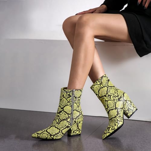 SHEMEE Women's Snakeskin Chunky High Heels Booties Pointed Toe Block Heel Snake Print Side Zipper Ankle Boots Fashion Dress Shoes 4