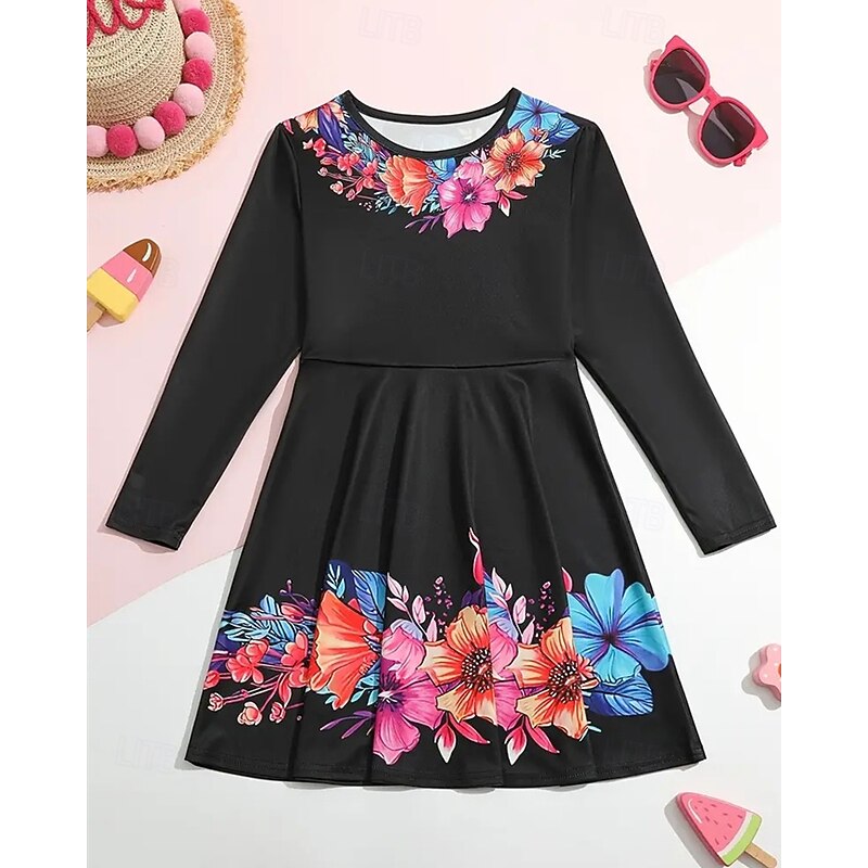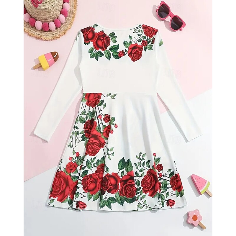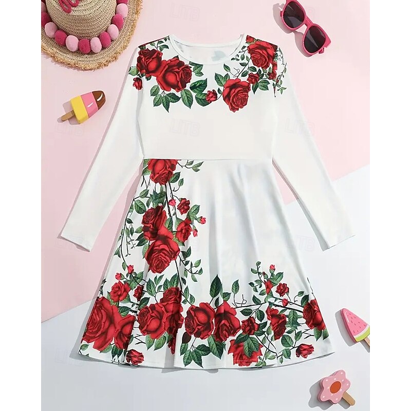 More information about Easter Girls' 3D Floral Graphic Dress Long Sleeve Summer Spring Vacation Daily Holiday Beautiful Sweet Kids 4-12 Years Casual Dress A Line Dress Knee-length Regular Fit