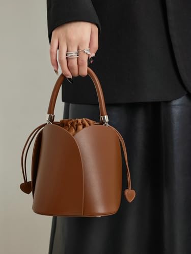 HOT ! Molodo PU Leather Petal Bucket Bag Drawstring Closure Velvet Ruched Handle Heart Accent Handheld Crossbody
