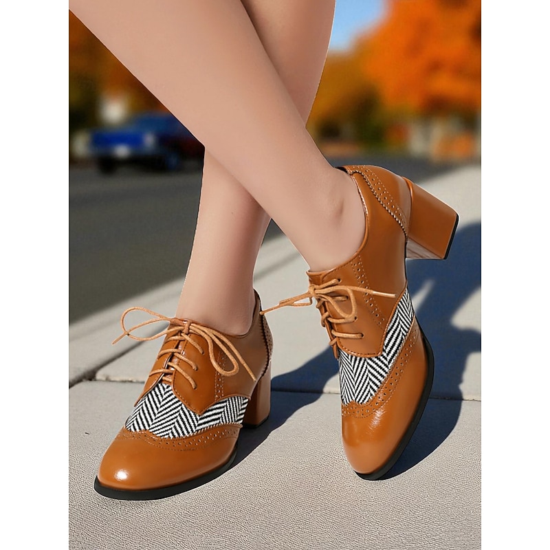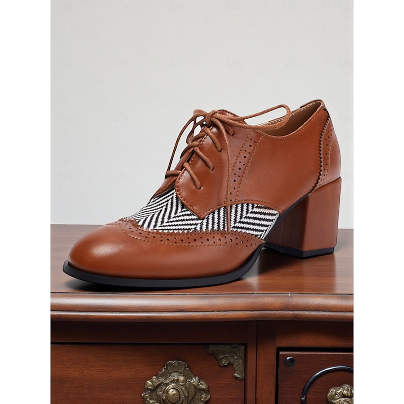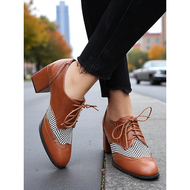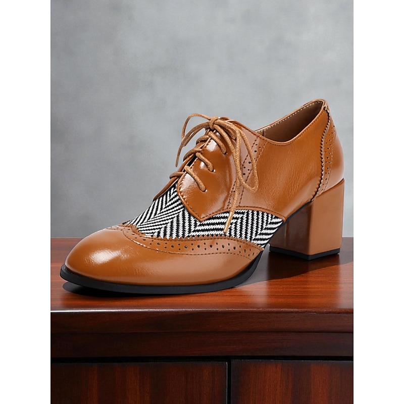 Highlights - High-quality faux leather upper material for a luxurious look and feel - Synthetic leather lining for added comfort and durability - Block heel design for stylish and comfortable wear - Classic round toe shape for a timeless and versatile look - Durable rubber outsole for long-lasting wear - Stay on-trend with the timeless brogue style in 2025