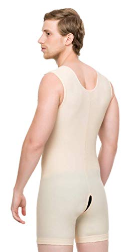 - The premium men's body suit created by Isavela contains an open crotch area and compression throughout the garment. The undergarment is ideal for post surgery for weeks two through eight.