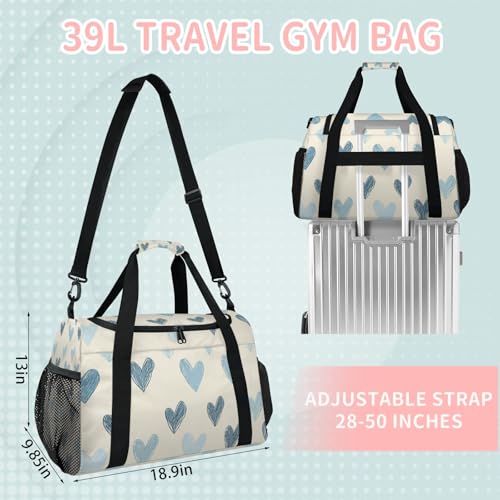 HOT ! Love Blue Hand Drawn Travel Duffel Bag Weekender Overnight Bags for Women Men Foldable Waterproof Tote Bag with Trolley Sleeve