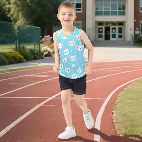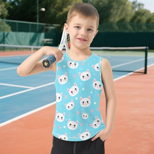 J JOYSAY Cat Paw Hearts Blue Boys Tank Top Sleeveless Muscle Shirts Quick Dry Kids T-Shirts 3-15T 3