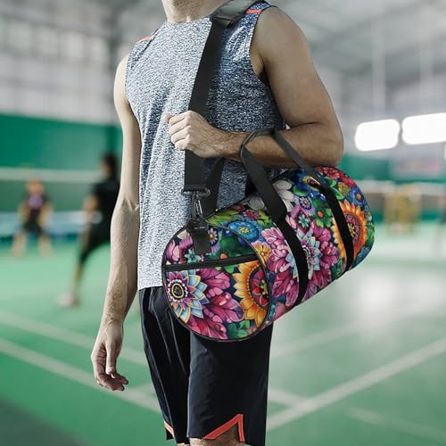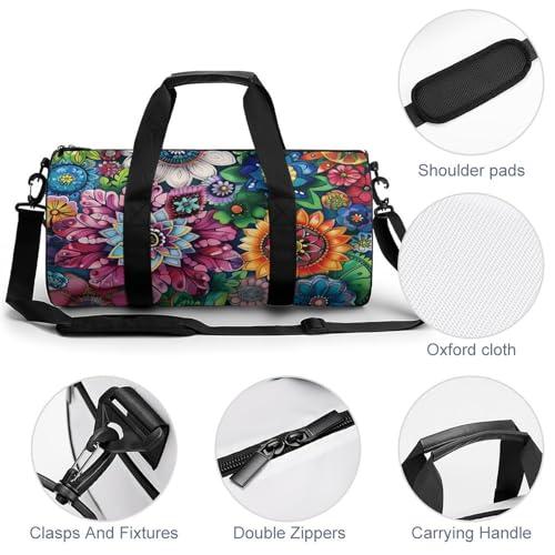 Boho Floral Colorful Flowers Gym Bag Lightweight Carry On Duffel Bag Athletic Sports Travel Bag Weekender Bag for Men Women 6