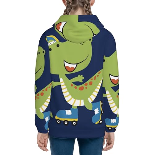More information about Dino Playing Roller Skate Kids Pullover Hoodies Boys Zip Up Sweatshirts Girls Athletic Clothes with Pocket