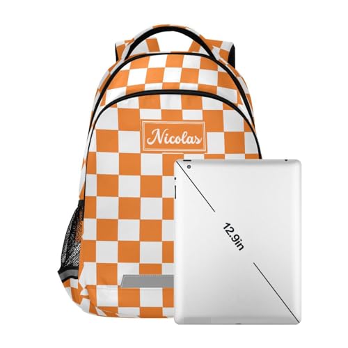 HOT ! Custom Checkered Plaid Orange Backpack for Boys Girls Lightweight Personalized Bookbag for Students Elementary School Laptop Customized Daypack Rucksack for Teens Travel