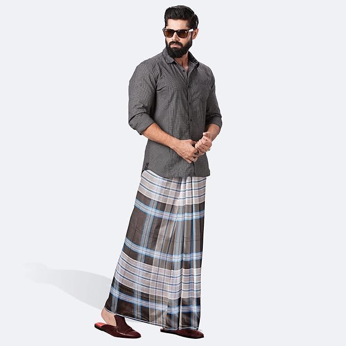 Dhoti/Sarong Coverups/Wrap For Men | 100% Cotton Indian Traditional Lungi Checked Design Dress | Long Sarong Cover Ups For The Beach | 3 Handloom Piece Combo Pack Comfortable (Color May Vary) 5