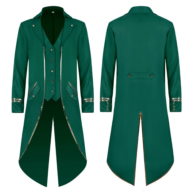 Retro Vintage Punk & Gothic Medieval Masquerade Tuxedo Vampire Plague Doctor Plus Size Solid Color Fancy Dress Men's Royal Steampunk Masquerade Party Adults' Coat 12