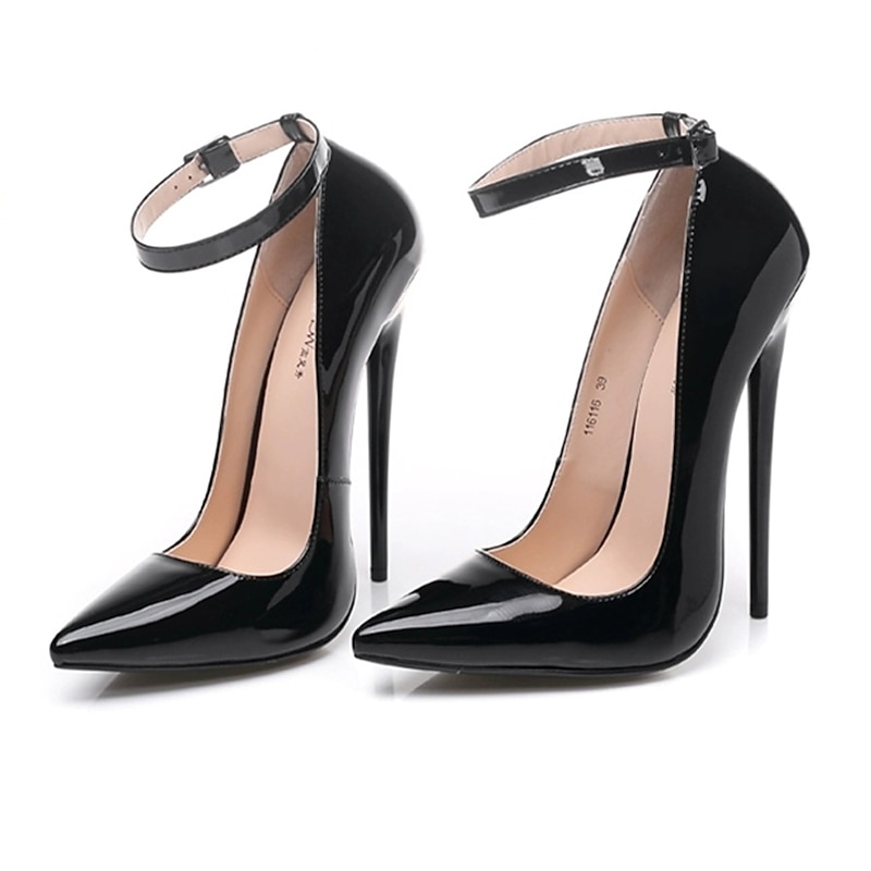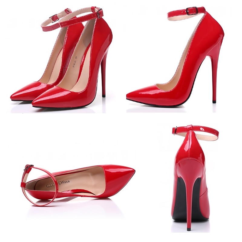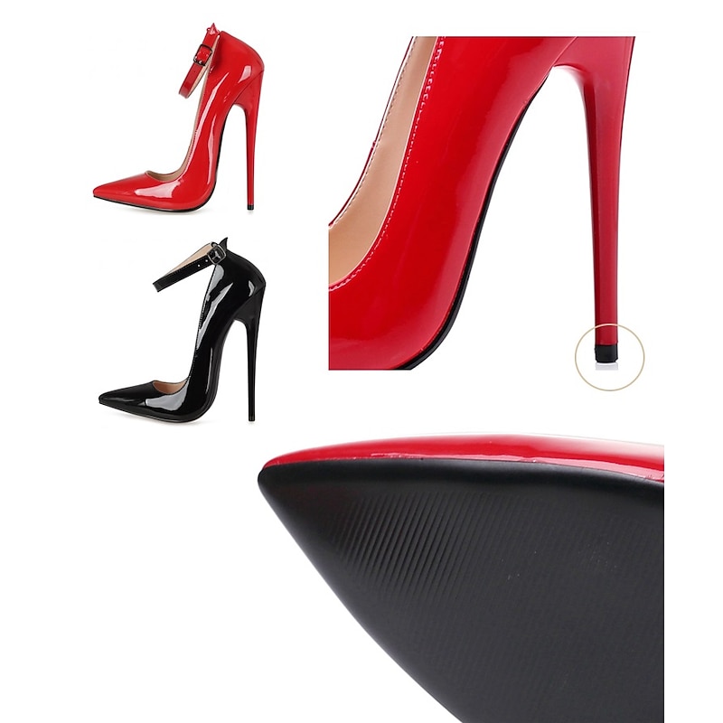 More information about Women's Red Patent Leather Stiletto High Heel Pumps with Ankle Strap - Sexy Pointed Toe Dress Shoes