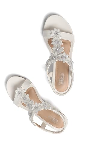 • Elaborate Design: Boho platform wedge sandals for women made of sparkly flower rhinestone. White dressy sandals for women with bling glitter pearl jeweled is casual in daily, easy to match. Cute fashion wedge combined with a smooth line design, more stylish and better looking.