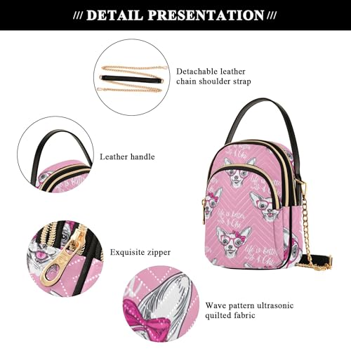 More information about Women's Shoulder Handbag Decorative Cell Phone Wallet Chain Purse Quilted Zipper Bowler Tote Ladies Satchel Cute Chihuahua Dogs Pink Bows Pink Sketch