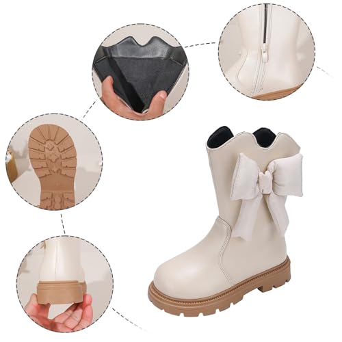 IWIHMIV Toddler Girl Riding Boots Mid Calf Bow Boots Outdoor Comfortable Thick Sole Non Slip Booties with Side Zipper 4