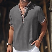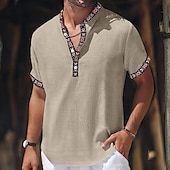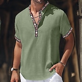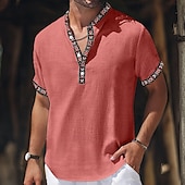 More information about Men's Shirt Linen Shirt Summer Shirt Beach Wear Geometric Vacation Casual Red Green Khaki Gray Short Sleeve V Neck Summer Spring & Summer Clothing Apparel Color Block