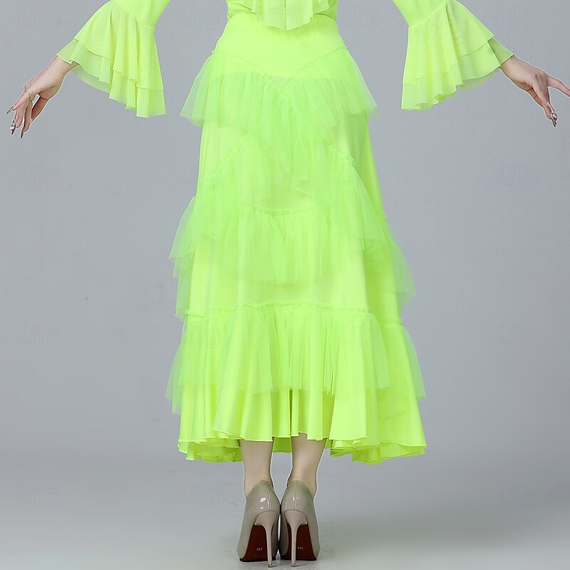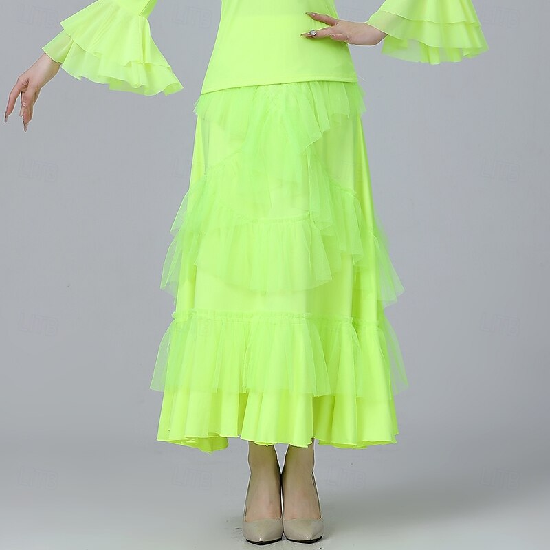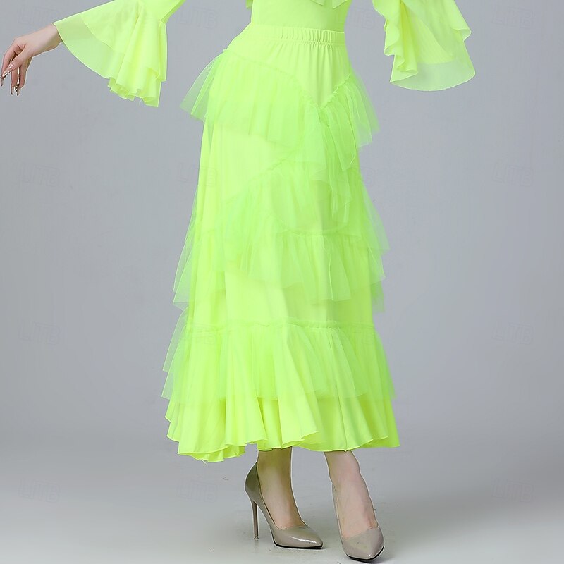 Latin Dance Skirts Pure Color Splicing Tulle Women's Performance Training High Polyester Tulle 5