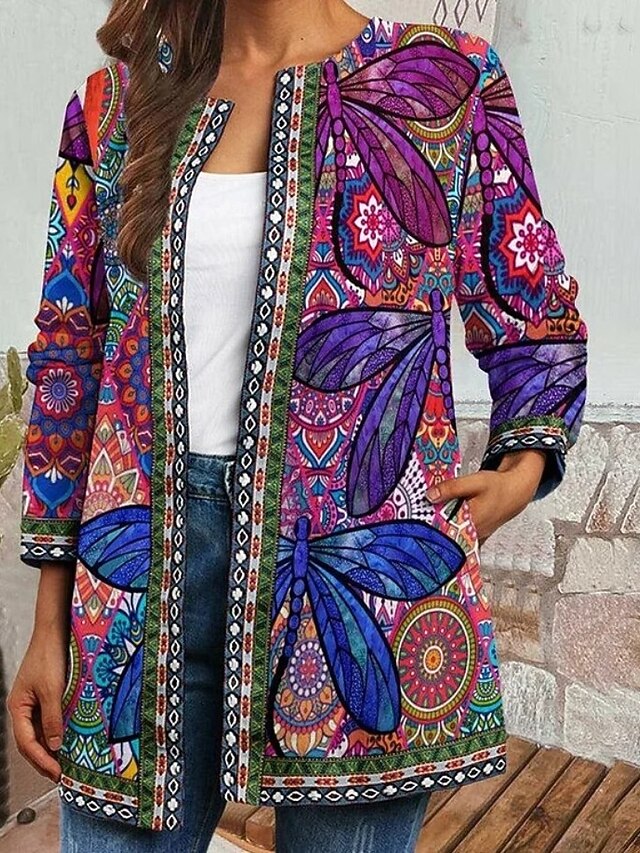 HOT ! Women's Jacket Dailywear Print Floral Casual / Daily Elegant Regular Fit Outerwear Long Sleeve Spring Black S