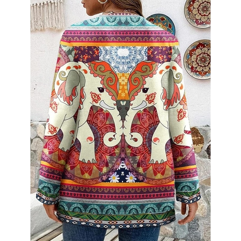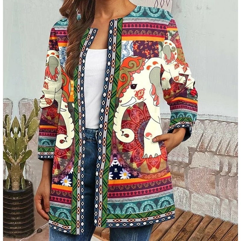 Women's Jacket Dailywear Print Floral Casual / Daily Elegant Regular Fit Outerwear Long Sleeve Spring Black S 11