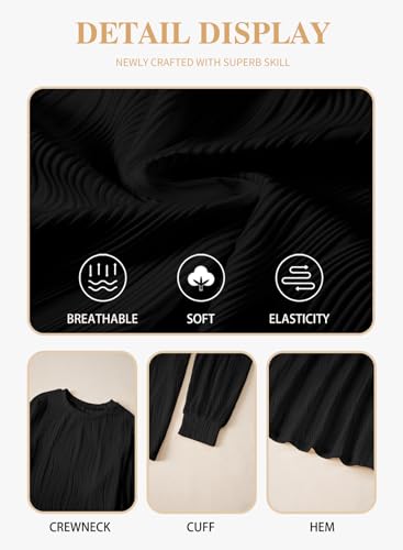 Eytino Plus Size Tops for Women Crewneck Textured Long Sleeve T Shirts Solid Casual Loose Basic Blouses(1X-5X) 1