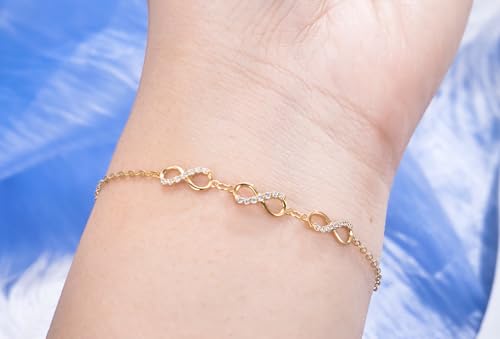 • 【Design】 Three forever infinity shaped decorated with created moissanite stones, this yellow gold bracelet means the love between you and her