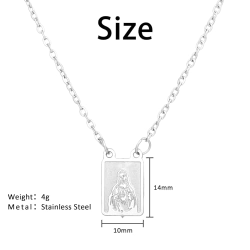 • DELICATE PENDANT SIZE - The stainless steel scapular medal necklace on our religious necklace measures 8x11mm, making it small and delicate enough for daily wear. The catholic pendant adds a touch of elegance to any outfit while proudly displaying your Catholic faith.