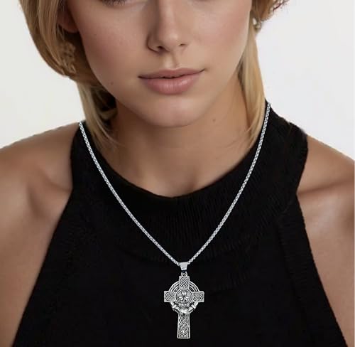 Big Vintage Celtic Cross Pendant Necklace for Men & Women - Stainless Steel Irish Jewelry with Shamrock & Claddagh Design - Adjustable 23.6"+2" Chain - Religious Protective Gift 4