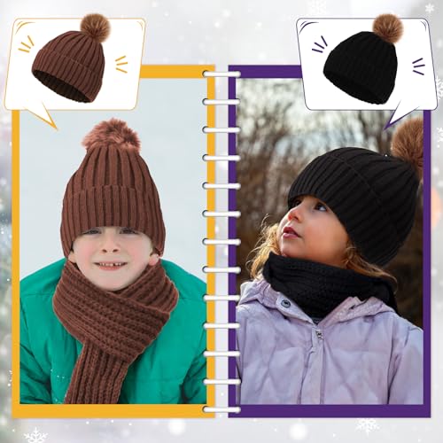 Liitrsh 4 Sets Kids Winter Hat Gloves Scarf Set Girls Boys Knit Hat Long Scarf Snow Gloves Outdoor for Toddler 6