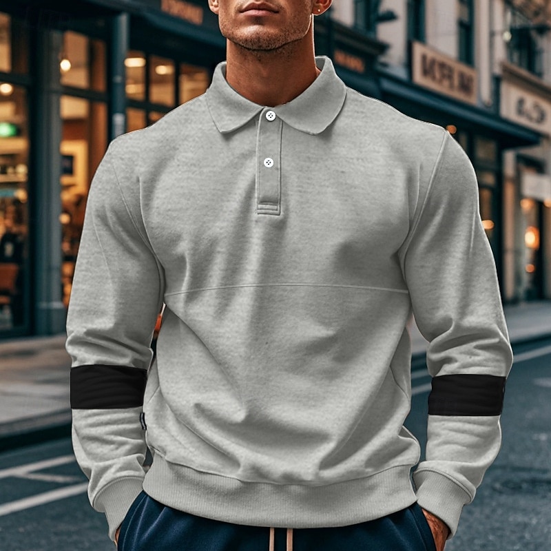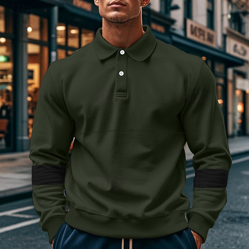 More information about Men's Golf Shirt Golf Polo Work Casual Lapel Long Sleeve Basic Modern Color Block Patchwork Button Spring & Fall Regular Fit Black White Army Green Khaki Gray Golf Shirt