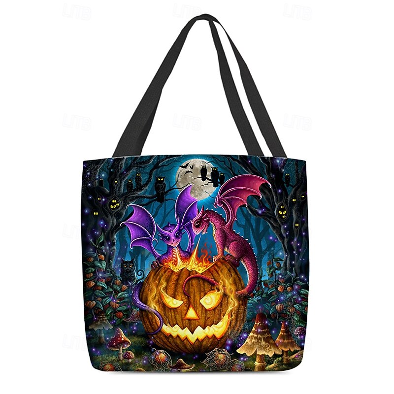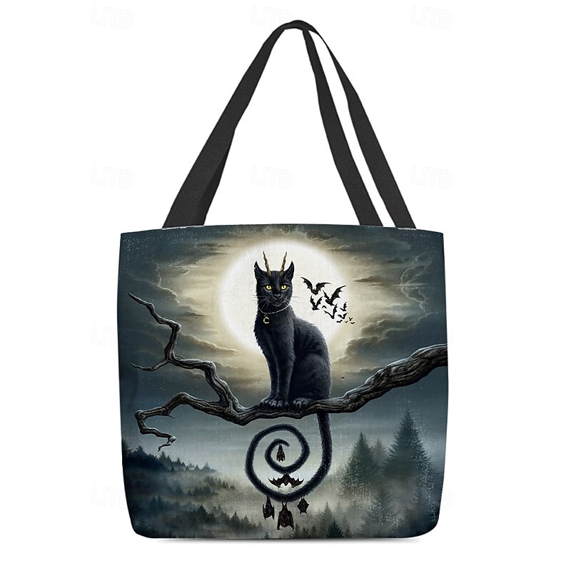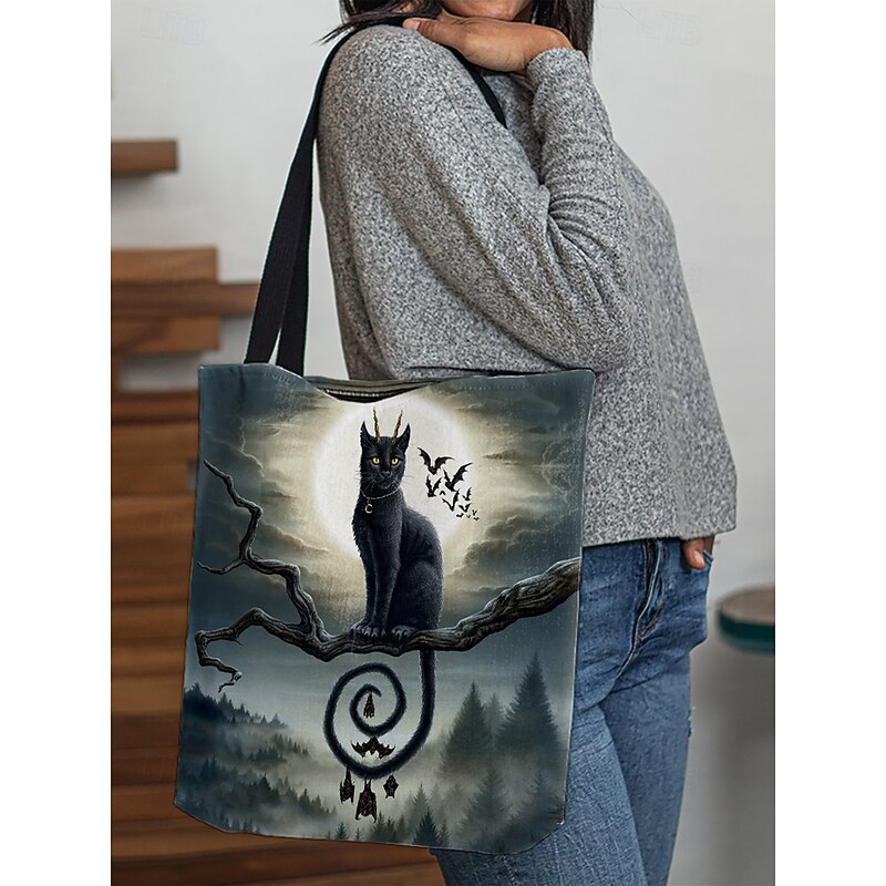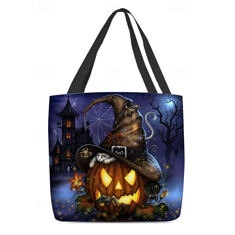 HOT ! Women's Halloween Pumpkin Cat Print Tote Bag By Sarah Richter– Large Reusable Polyester Shoulder Bag with Zipper Pocket for Holiday Shopping & Parties
