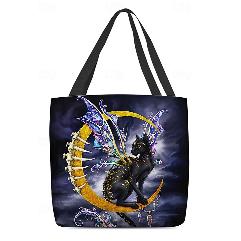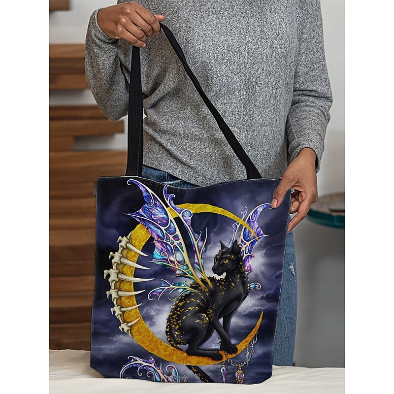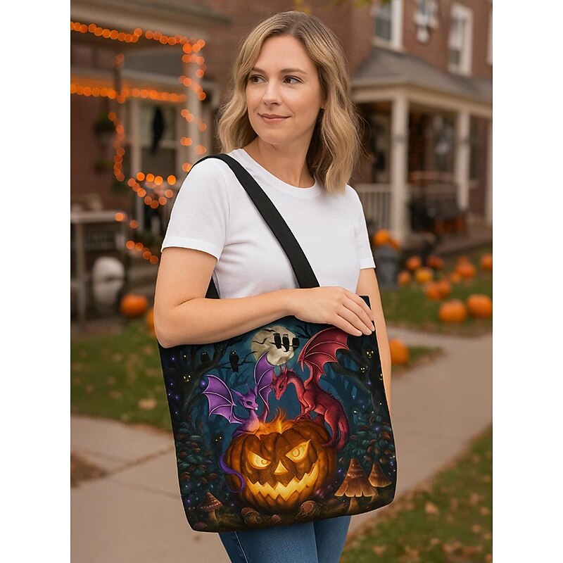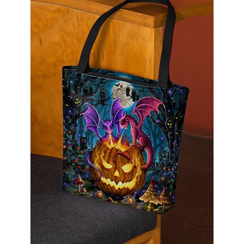 More information about Women's Halloween Pumpkin Cat Print Tote Bag By Sarah Richter– Large Reusable Polyester Shoulder Bag with Zipper Pocket for Holiday Shopping & Parties