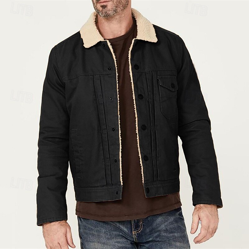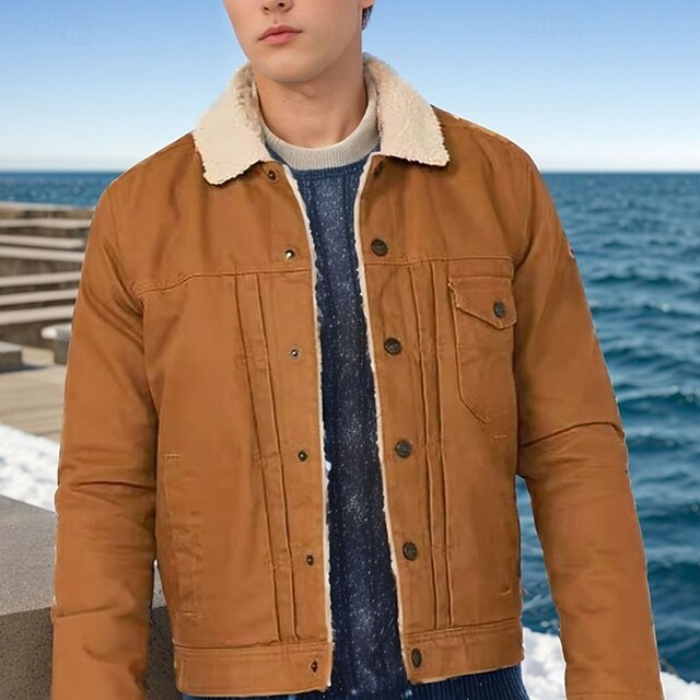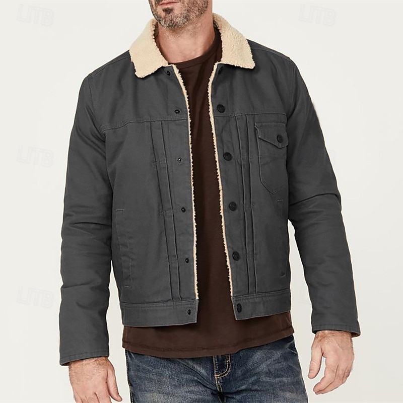 More information about Men's Winter Jacket Fleece Jacket Cargo Jacket Casual Jacket Vacation Daily Thermal Warm Pocket Fleece Fall Winter Plain Fashion Streetwear Lapel Regular Black Khaki Dark Gray Jacket