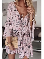 More information about Women's Mini Dress Petite Dress Print Dress Peplum Dresses Fashion Outdoor Daily Holiday Regular Fit Flower 3/4 Length Sleeve V Neck Pink Dusty Rose Blue Summer