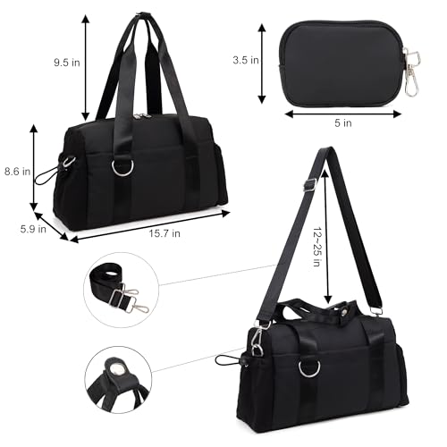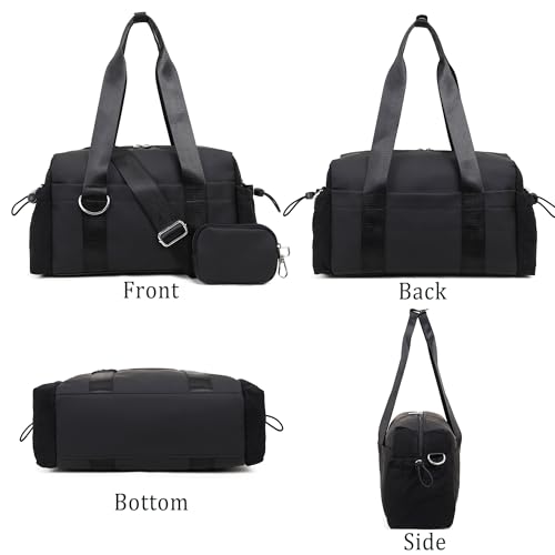HOT ! Everyday Mini Gym Bag for Women 2.0, Small Tote with Zipper Compartment Waterproof Travel Duffle Cute Handbag Workout Carry On with Removeable Shoulder Strap & Coin Wallet Easy to Clean - Black