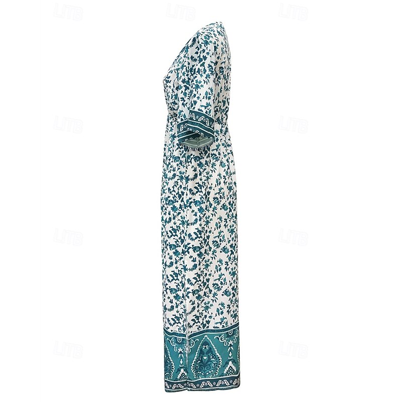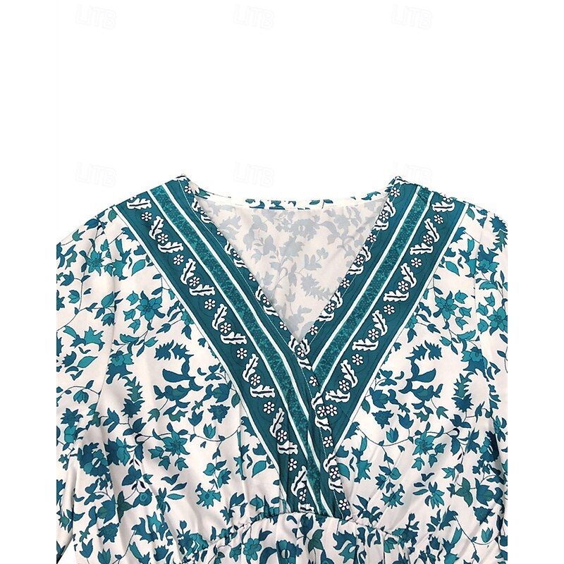 Women's Midi Dress Casual Dress A Line Dress Summer Dress Boho Dress Hawaiian Stylish Vacation Daily Date Regular Fit Floral Short Sleeve V Neck Dark Green Summer 5