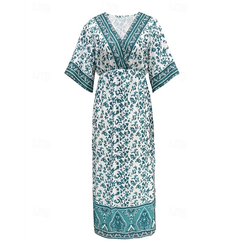 More information about Women's Midi Dress Casual Dress A Line Dress Summer Dress Boho Dress Hawaiian Stylish Vacation Daily Date Regular Fit Floral Short Sleeve V Neck Dark Green Summer