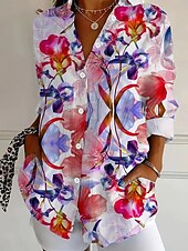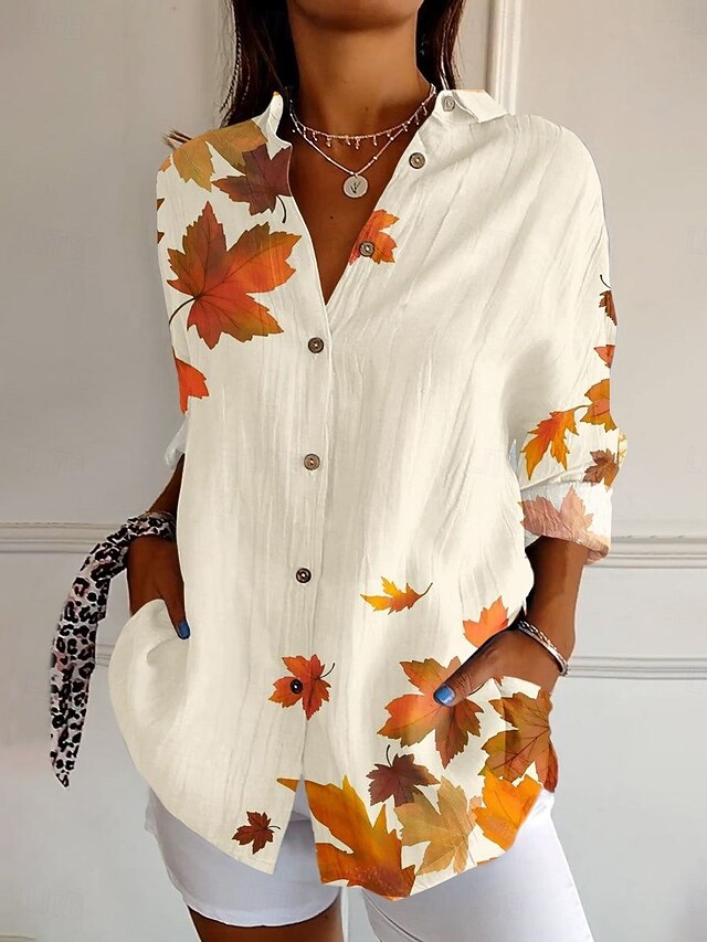 More information about Women's Shirt Graphic Leaf Elegant Vintage Daily Long Sleeve Bishop Sleeve Shirt Collar Regular Tops Daily Holiday Print Yellow Red Blue Purple Summer Fall Winter
