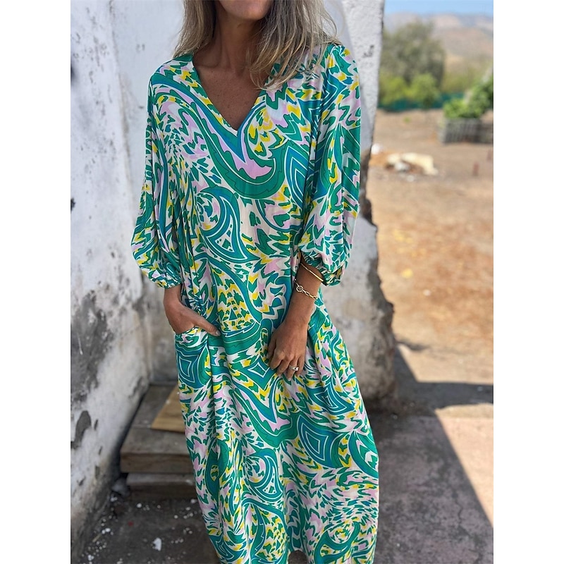 HOT ! Women's Maxi Dress Casual Dress Boho Chic Dresses Boho Dress Bohemia Cute Stylish Lantern Sleeve Vacation Daily Date Loose Fit Graphic Half Sleeve V Neck Pink Green Summer Spring Fall