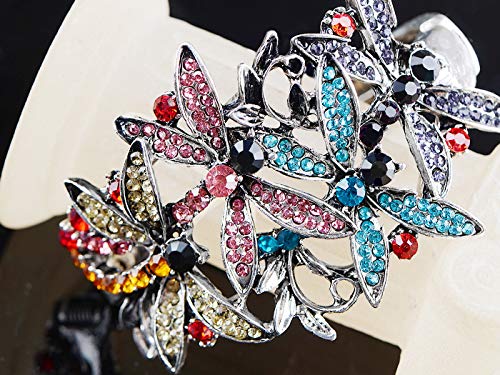Alilang Silvery Tone Shiny Colorful Crystal Rhinestones Flying Dragonfly Firefly Insect Cuff Bangle Bracelet 6