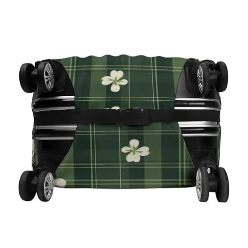 Green Plaid Checkered Shamrocks Travel Luggage Cover for Suitcase 19-32 Inches Elastic Washable Baggage Protector 4