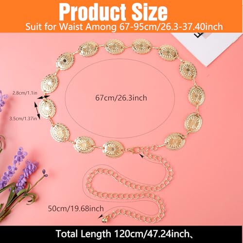 • 【Universal Fit for Women】GEEHUA's adjustable metal belt ensures a comfortable fit for every woman. Equipped with a flexible extension chain, the lobster clasp of concho belt provides easy fastening and removal, catering to waist sizes up to 70-95cm. Tailor the perfect length to complement your curves, whether you're dressing up or down.
