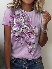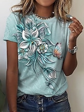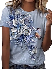 More information about Women's T Shirt Fashion Floral Butterfly Print Short Sleeve Regular Tops Round Neck Casual Holiday Blue Summer