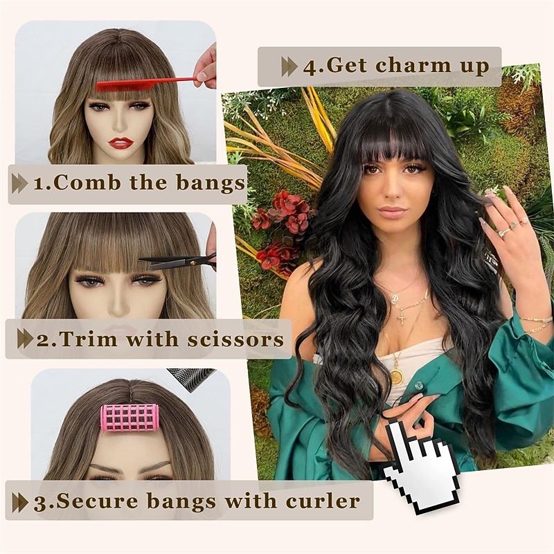 $19.99 - Black Wig with Bangs for Women Long Wavy Wigs Curly Synthetic Wig Natural Looking Hair Heat Resistant Wigs for Daily Party Use 2025. Shop for cheap Synthetic Trendy Wigs online? Buy at lightinthebox.com on sale today!