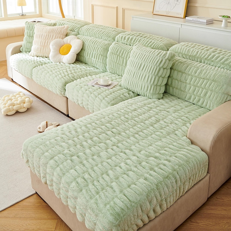 Soft Warm Faux Fur Couch Sofa Cover,Thick Shaggy Fuzzy Magic Sofa Cover,Stretch Sofa Seat Couch Cushion Slipcovers , Anti-Slip Furniture Protector for Sectional Seat Cover 22