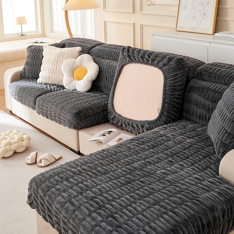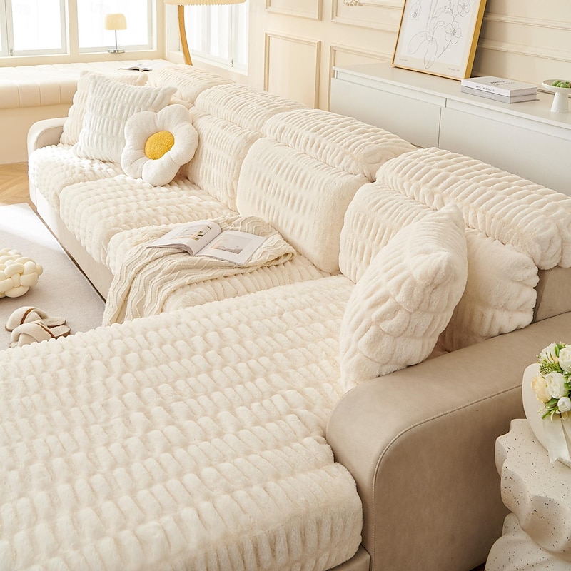 Soft Warm Faux Fur Couch Sofa Cover,Thick Shaggy Fuzzy Magic Sofa Cover,Stretch Sofa Seat Couch Cushion Slipcovers , Anti-Slip Furniture Protector for Sectional Seat Cover 7