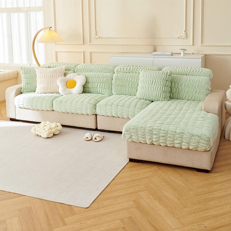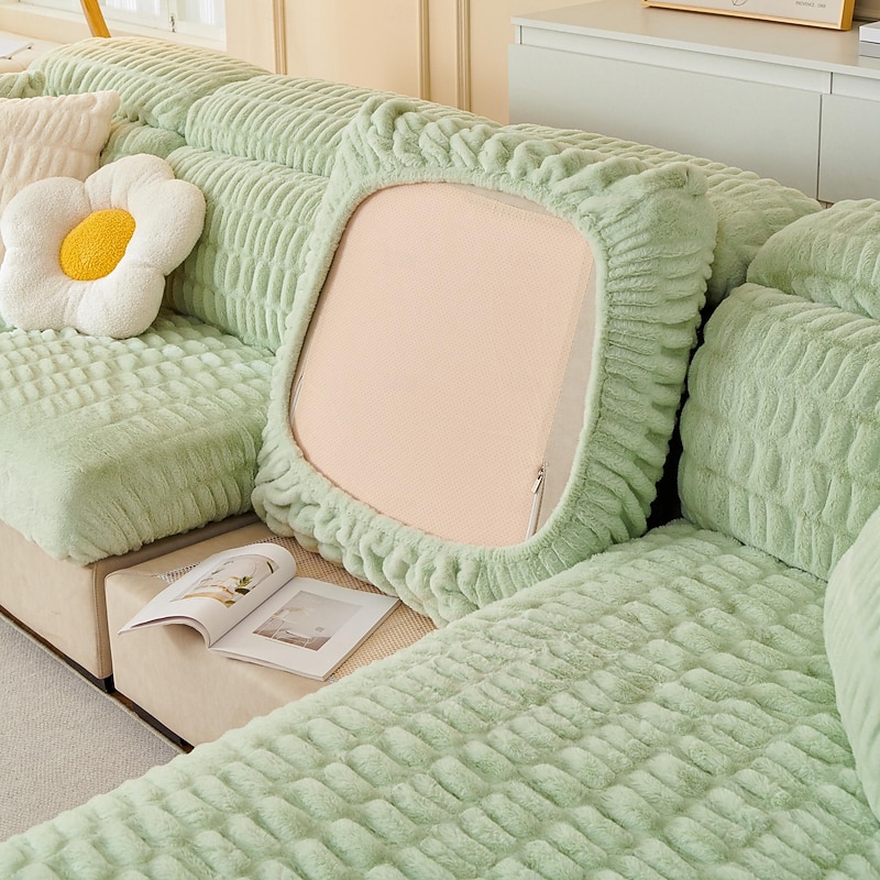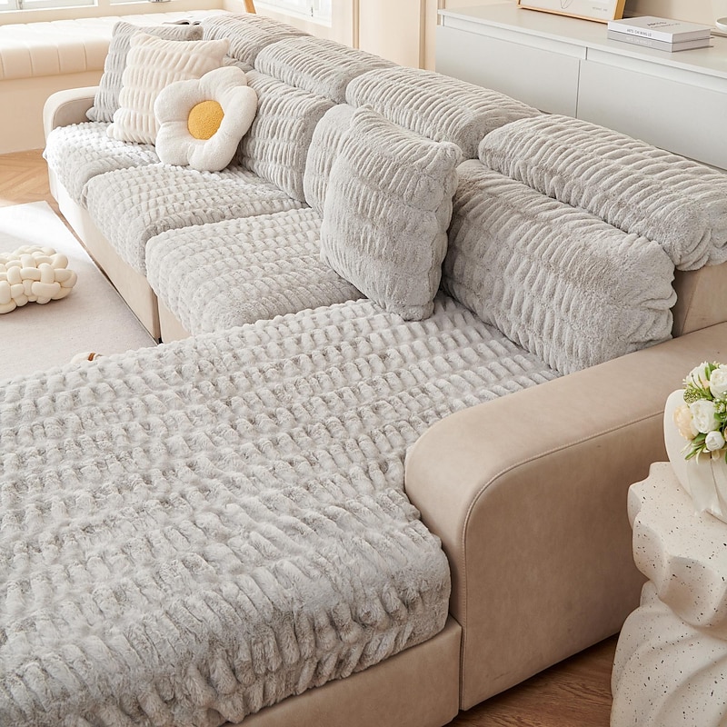 Soft Warm Faux Fur Couch Sofa Cover,Thick Shaggy Fuzzy Magic Sofa Cover,Stretch Sofa Seat Couch Cushion Slipcovers , Anti-Slip Furniture Protector for Sectional Seat Cover 6