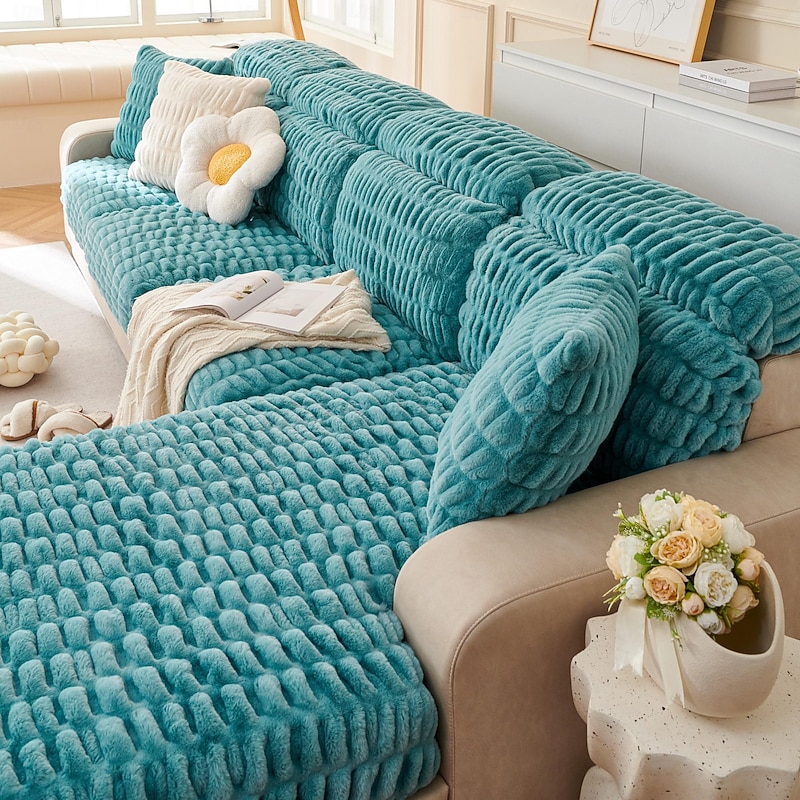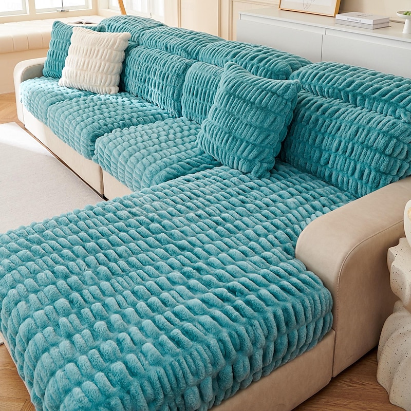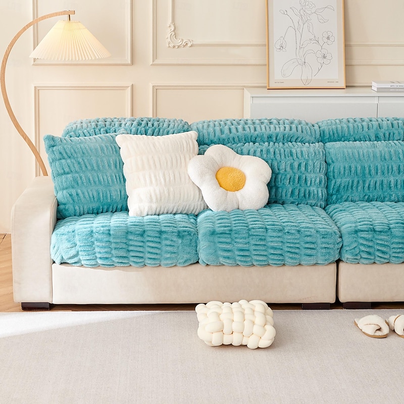 Soft Warm Faux Fur Couch Sofa Cover,Thick Shaggy Fuzzy Magic Sofa Cover,Stretch Sofa Seat Couch Cushion Slipcovers , Anti-Slip Furniture Protector for Sectional Seat Cover 12