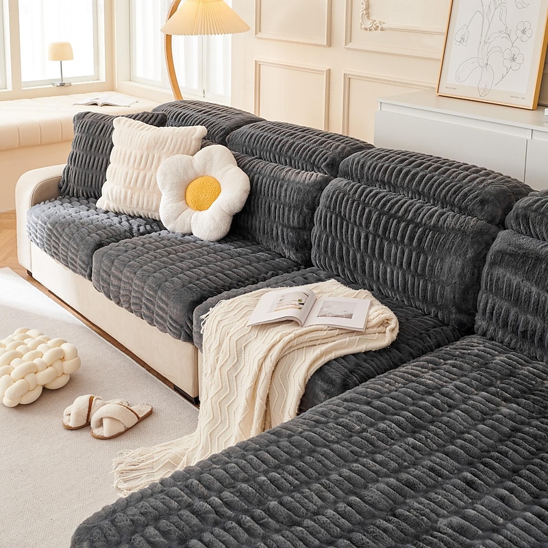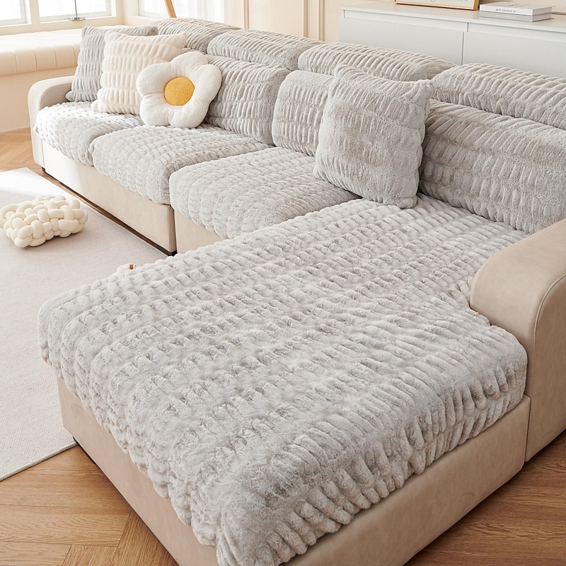 Soft Warm Faux Fur Couch Sofa Cover,Thick Shaggy Fuzzy Magic Sofa Cover,Stretch Sofa Seat Couch Cushion Slipcovers , Anti-Slip Furniture Protector for Sectional Seat Cover 28